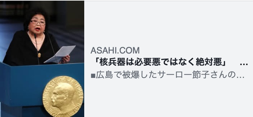 「核兵器は必要悪ではなく絶対悪」 サーロー節子さん 2017年12月10日 https://digital.asahi.com/articles/ASKDB4H8VKDBUHBI008.html