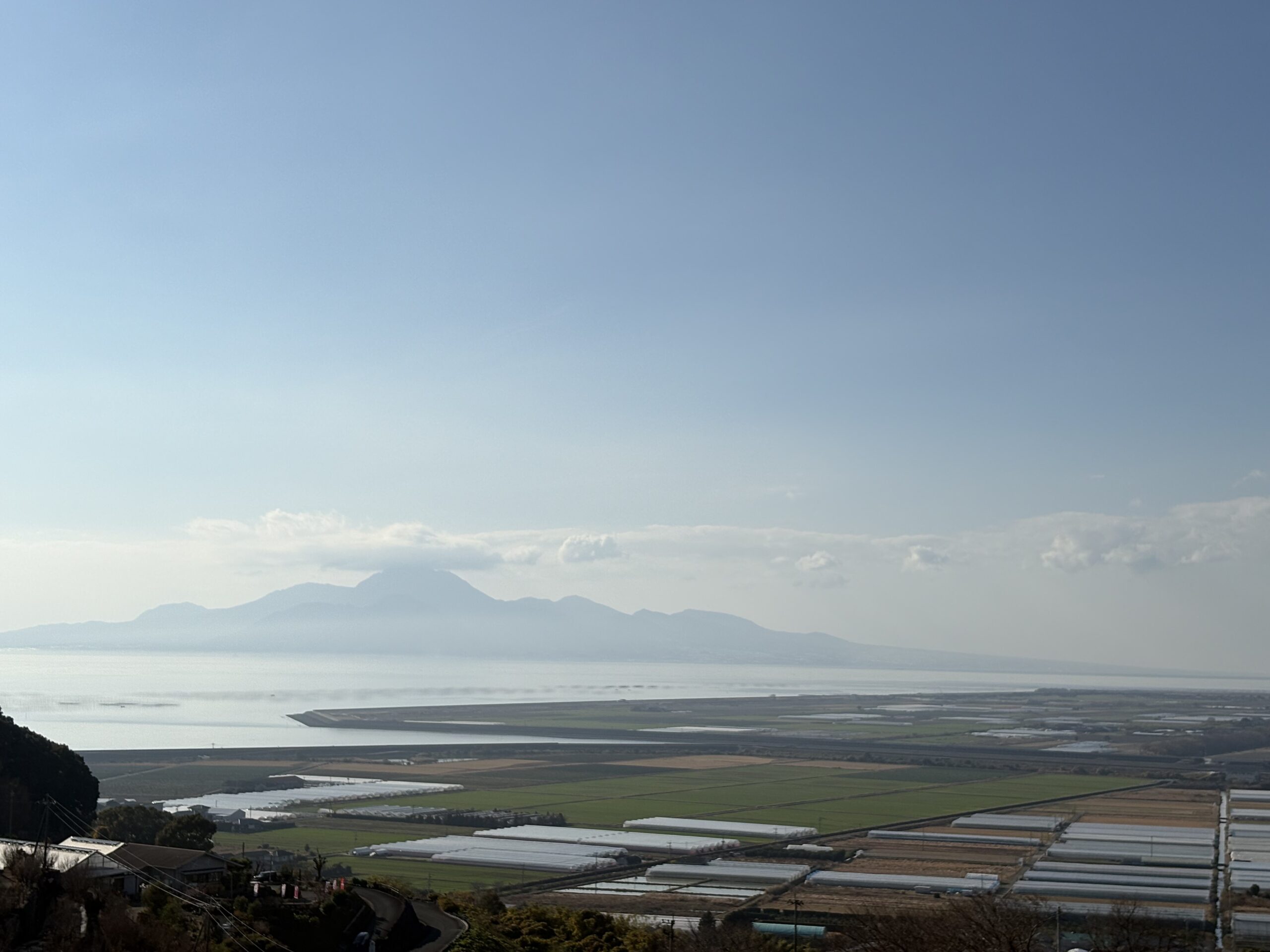 雲仙というだけあって、島原半島の普賢岳が雲に霞んでいる。