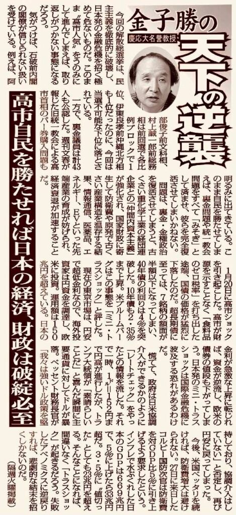 高市の「減税が私の悲願でした」にだまされる有権者こそ、一番のバカだ。