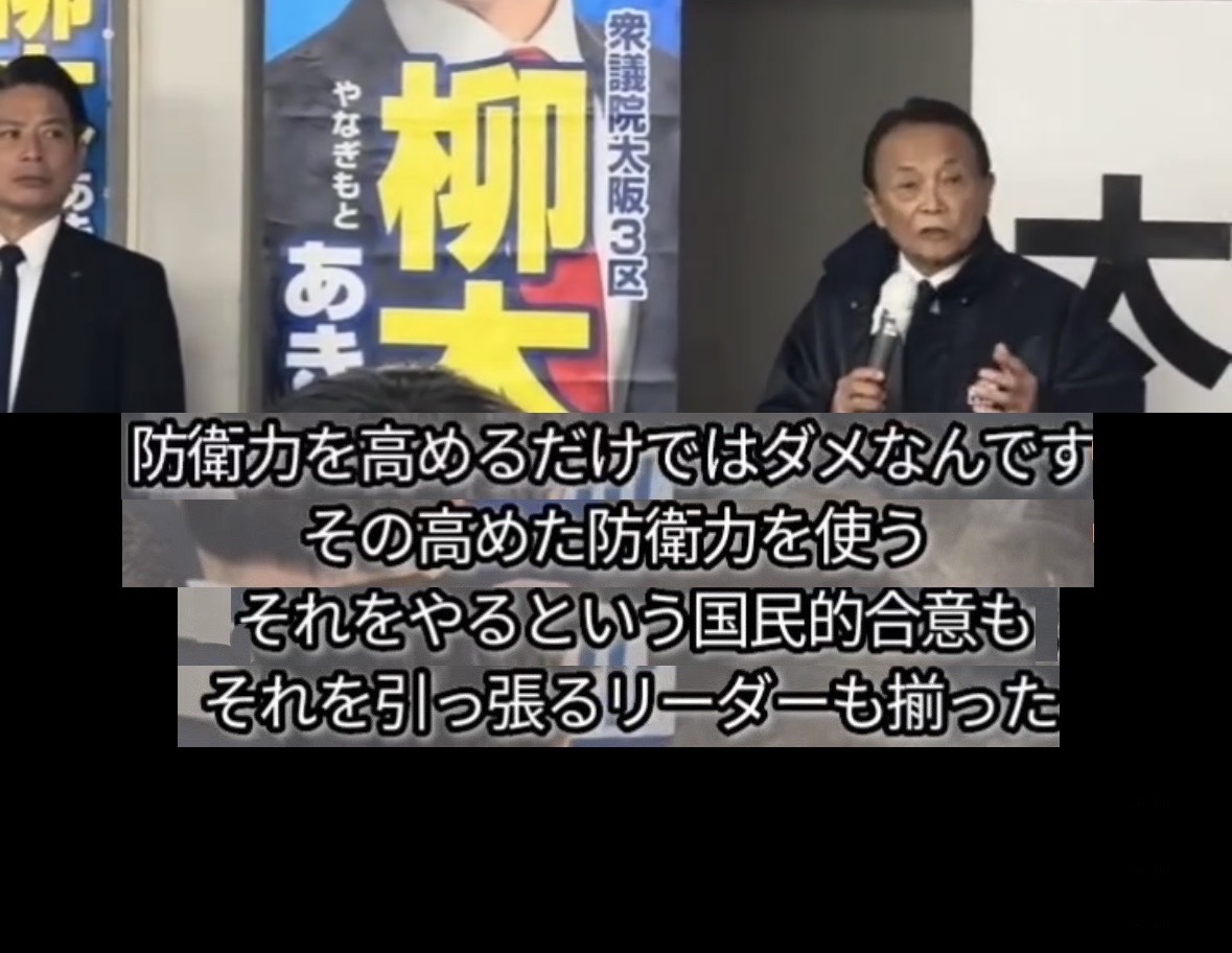 麻生太郎:「防衛力をいざとなったら使う」
